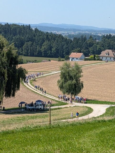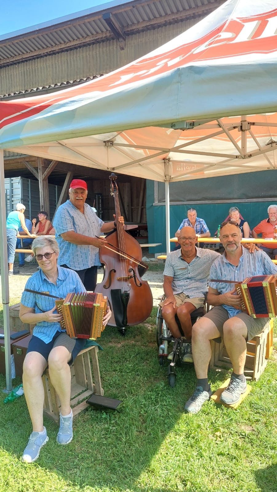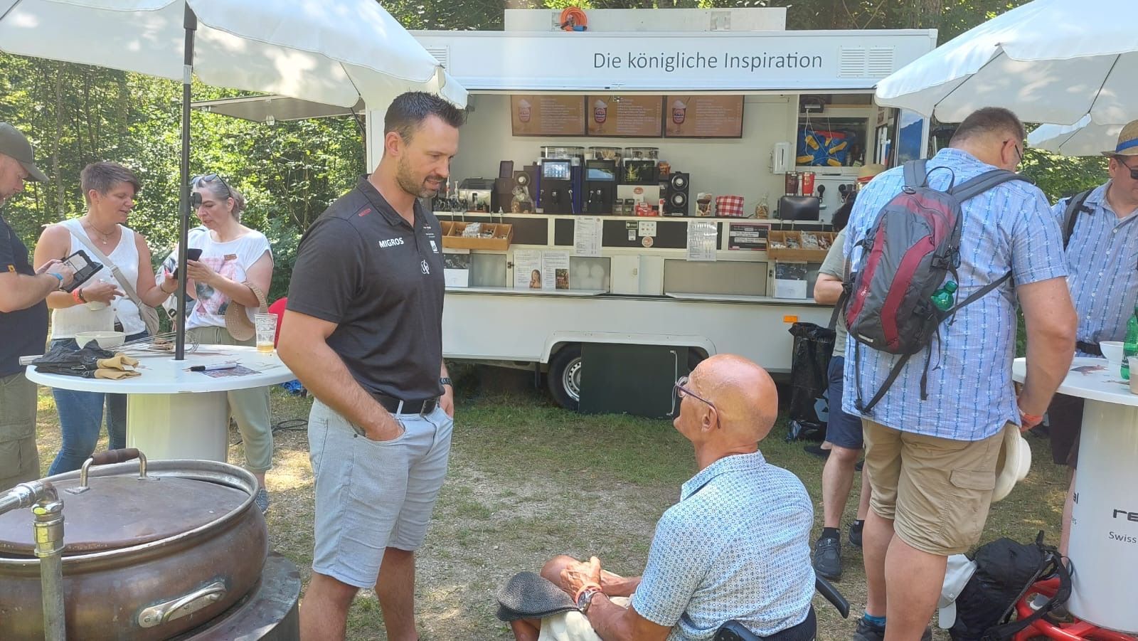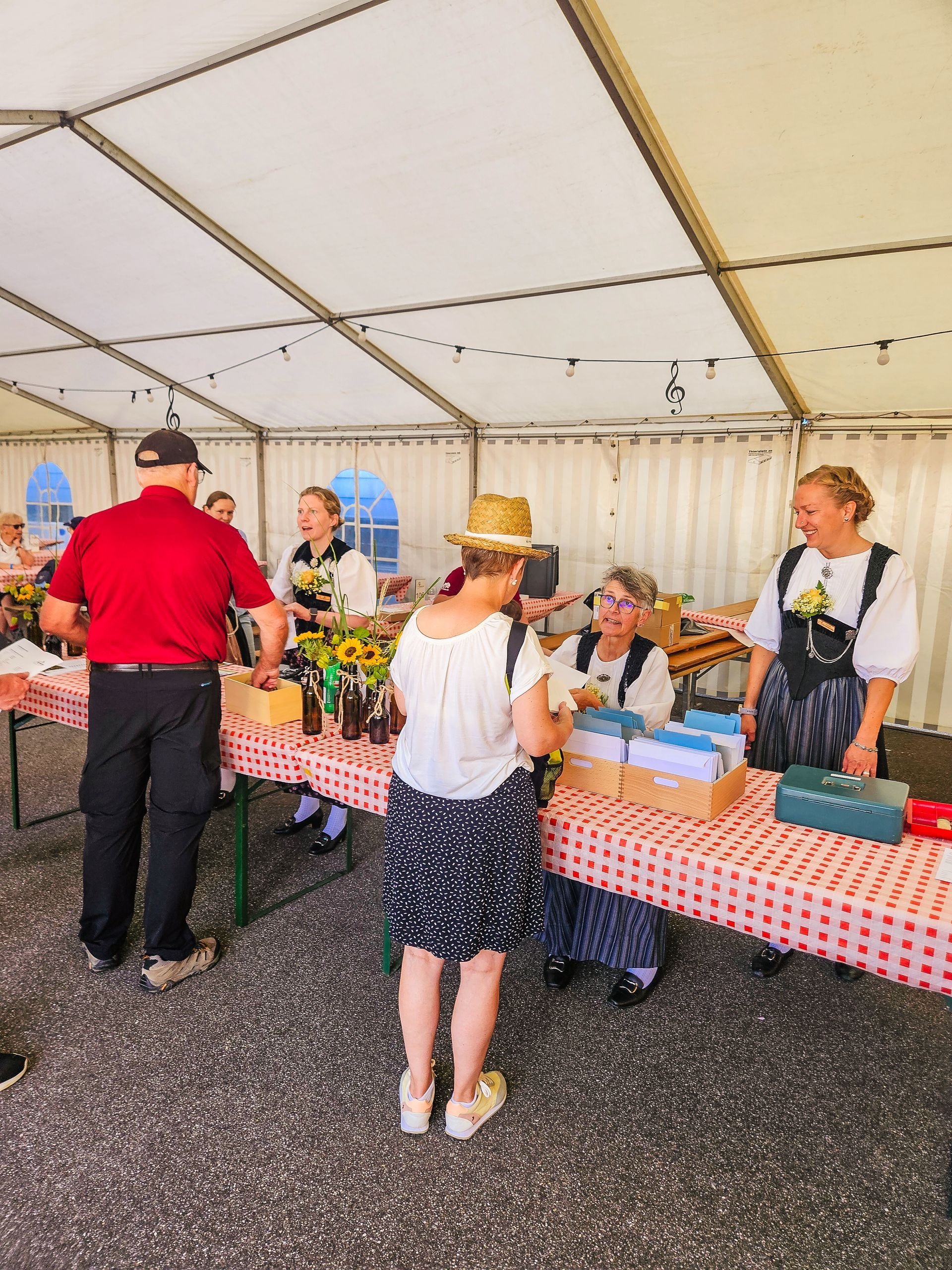 Der Höhepunkt der Wanderung bildete die urchige Chästeilet rund um den Käsegötti bzw. mehrfachen paralympischer Sieger Heinz Frei. Der Emmentaler Käse-Laib, welcher grosszügigerweise welcher grosszügigerweise von der Emmentaler Dorfkäserei AG und Emmentaler AOP gesponsert wurde, konnte erfolgreich versteigert werden. Der Erlös aus dem Verkauf des Käses, welcher seit seiner Taufe im Mai 2025 den Namen «Para-Rugeli» trug, geht auf Wunsch des Käsegöttis an das Parra Racing Team. Heinz Frei konnte übrigens die Wanderung trotz Rollstuhl ebenfalls meistern und die Kulinarik sowie die dargebotene Kunst der Jodlerklubs in bester Begleitung geniessen. Er war angetan von der ungezwungenen Geselligkeit und der Atmosphäre, die die Besuchenden und die Klubs ausstrahlten.